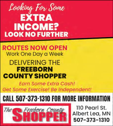 Deadline for ALL Display Ads is 5 pm the Thursday prior to the following Tuesday’s publication of the Freeborn County Shopper.