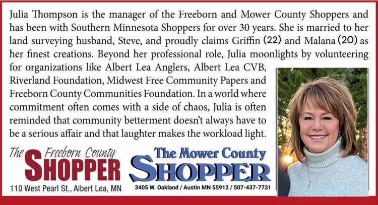 Sarah Thelen is the Sales Manager at the Freeborn County Shopper. She has been at the Shopper for 17 years helping businesses grow through effective advertising and strategic planning. Passionate about community engagement, she has been an active member of the Albert Lea - Freeborn County Chamber Ambassadors since 2013, working to support and promote local businesses. A proud mother of two, Ashton (20) and Eli (18), Sarah cherishes every moment spent with them. In her free time, she enjoys cooking, golfing, fishing, spending time with family and friends, and appreciating all kinds of music. She finds fulfillment in both her professional accomplishments and the meaningful moments shared with loved ones.