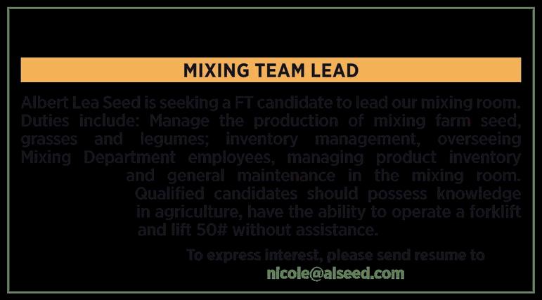 Albert Lea Seed is seeking a Regional Sales Manager to support and grow seed sales for Viking, Blue River, and ALSH products. This role focuses on dealer and farmer relationships, account development, and representing our brands across the region. This role is ideal for a motivated ag professional who enjoys building trust, helping farmers succeed, and representing a respected, independent seed company. Applicants, please send resume to nicole@alseed.com