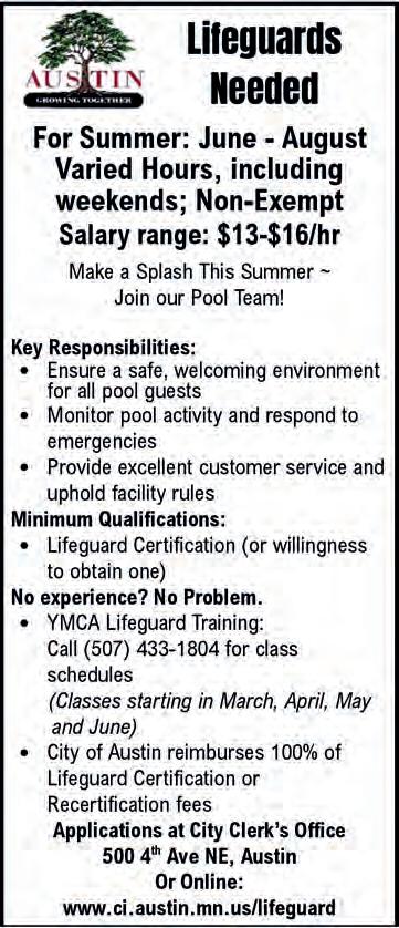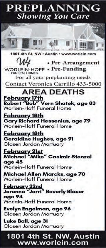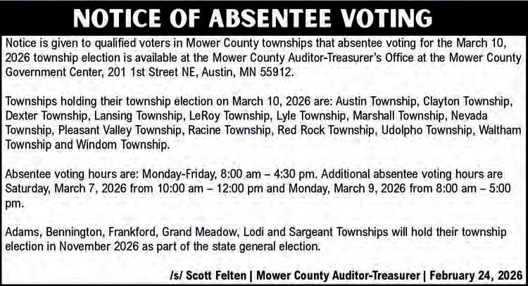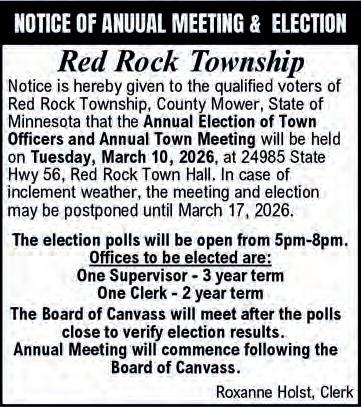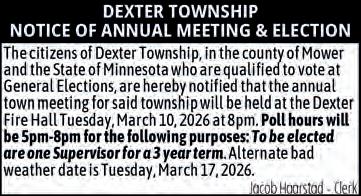 Deadline for ALL Display Ads is 5 pm the Thursday prior to the following Tuesday’s publication of the Mower County Shopper.