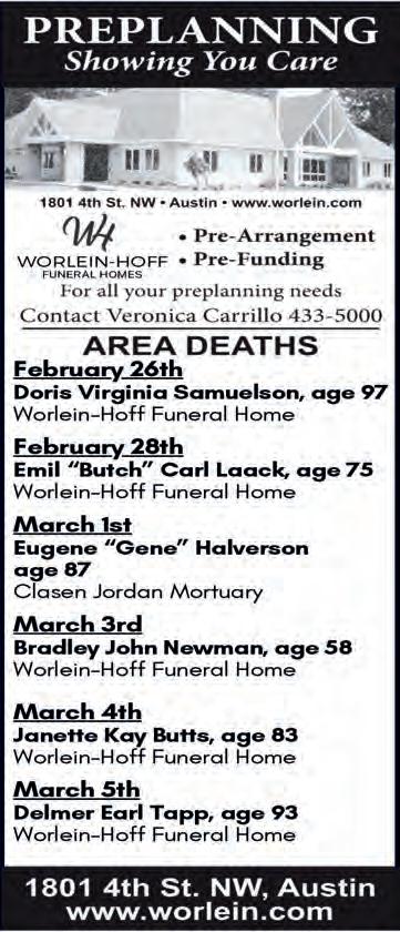 Deadline for ALL Display Ads is 5 pm the Thursday prior to the following Tuesday’s publication of the Mower County Shopper.