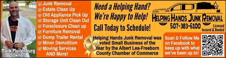 Old appliances, furniture, electronics, yard waste as well as any kind of Junk from anywhere! Basements, attics, garages. Free Estimates Senior Discounts BEST PRICES Call anytime: 507-219-0727