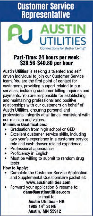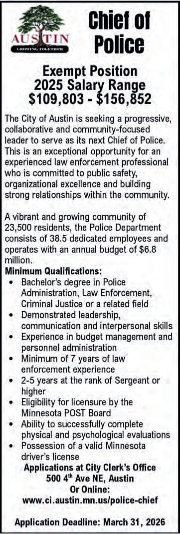 Applications, job description, complete qualification listing available on the Freeborn County website at: www.co.freeborn.mn.us. Applications and resumes must be received no later than 12:00 pm, Friday, March 20th, 2026.