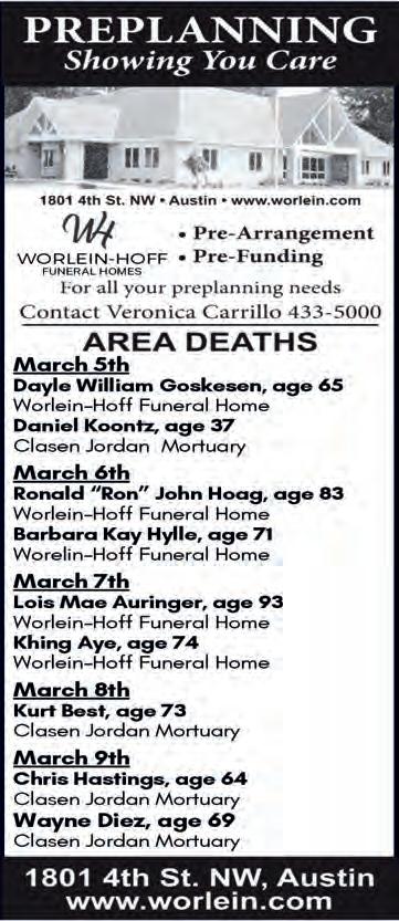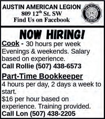 Storage Space. 10’x12’ & 12’x24’ units Available now. 2 miles South of Austin. 507-438-9141.