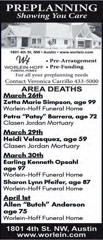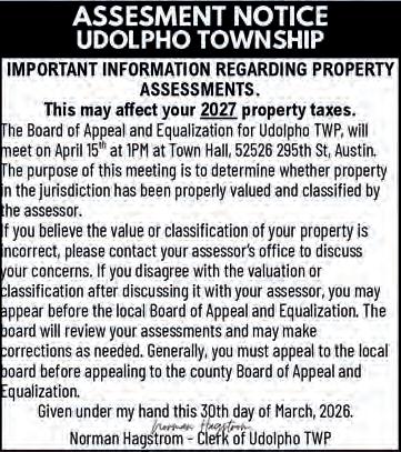 Deadline for ALL Display Ads is 5 pm the Thursday prior to the following Tuesday’s publication of the Mower County Shopper.