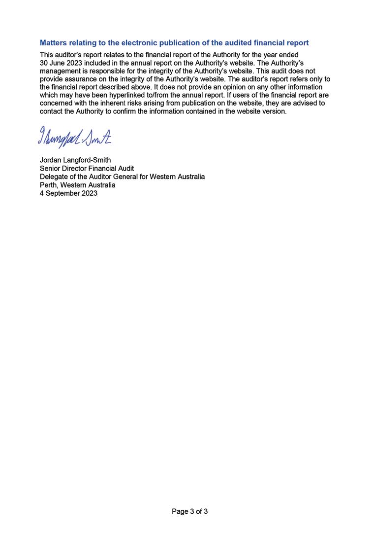 In accordance with the provisions of the Government Trading Enterprises Act 2023, Financial Management Act 2006 and other relevant legislation, I hereby submit for your information and presentation to the Parliament of Western Australia the annual report of Southern Ports Authority for the year ended 30 June 2023.