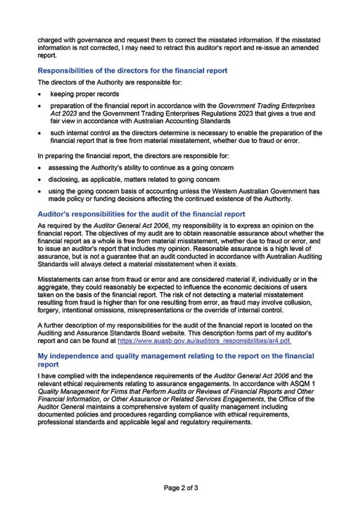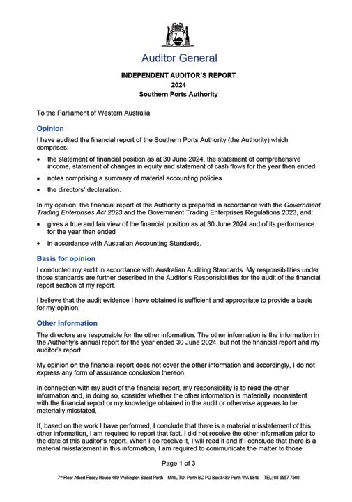 In accordance with the provisions of the Government Trading Enterprises Act 2023, Financial Management Act 2006 and other relevant legislation, I hereby submit for your information and presentation to the Parliament of Western Australia the annual report of Southern Ports Authority for the year ended 30 June 2024.
