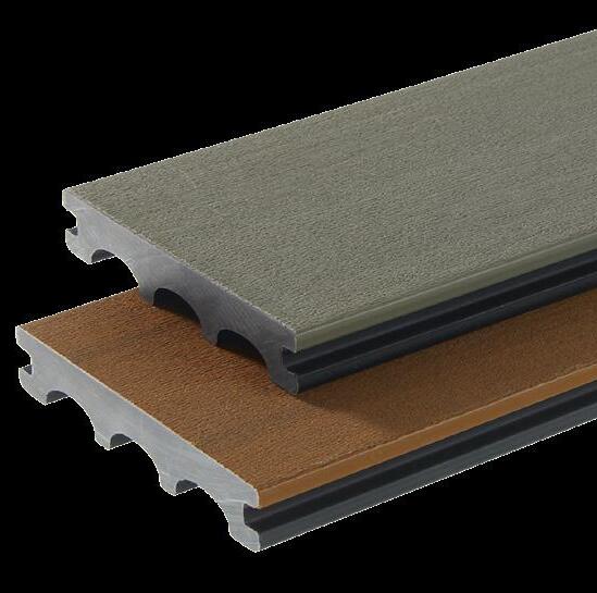 A fully capped solid composite decking system engineered for long-term strength and durability, finished with a premium, scratch-resistant sanded woodgrain surface.