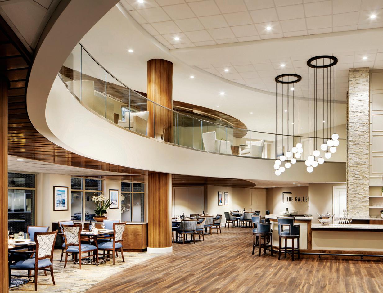 Step outside your door and enjoy beautifully decorated gathering spaces. There’s The Gallery , designed to architecturally connect all living areas and provide attractively appointed spaces for social connections to flourish. Named for its inspiring displays of artwork by talented residents, it features grouped seating, lovely private dining areas, and Lola’s , our neighborhood bar, the ideal place to catch up with friends and enjoy live music. With a sweeping view of Lola’s from above, the Loft Library provides the perfect place to quietly read or study. Cherish the outdoors in one of our gorgeously landscaped courtyards, around the warmth of a fire pit, or while strolling along a shaded path.