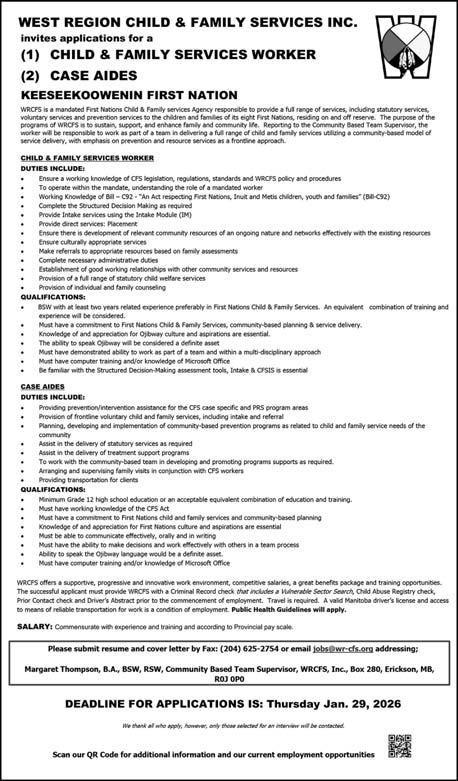It’s hard to believe but not everyone has Facebook. This ad you’re reading costs $13.50 and reaches over 5 communities and 3,000 readers every week. And next week it will be half price. Planning an event? If you tell them they WILL come. Call Michelle at 204759-2644 ext. 1.
