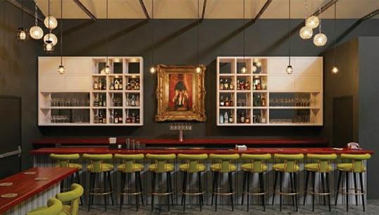 For Tab, DeLapp created a dark, moody space to display his bourbon collection.