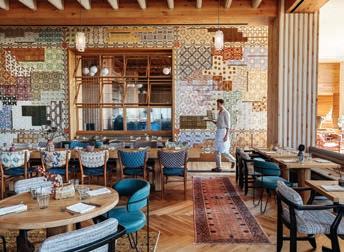 With a moody, masculine vibe, the Van Zandt plays up Austin’s musical legacy with vinyl rentals and nightly performances at its flagship restaurant, Geraldine’s. The menu here offers an elevated twist on traditional Mexican flavors, with standout dishes like the Oaxacan-inspired Tlayuda, a tostada-like dish with greens, avocado, pickled onion, prickly pear cactus, quesillo and a smoked-tomato vinaigrette,