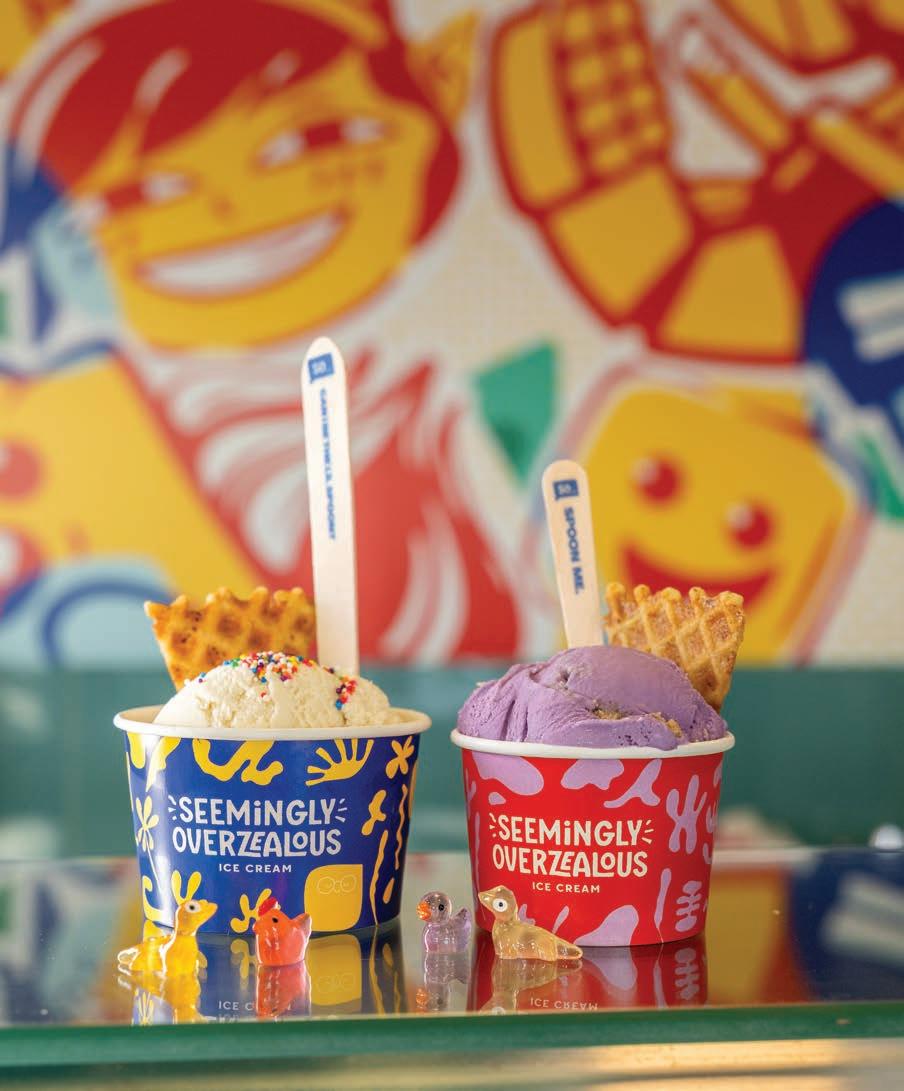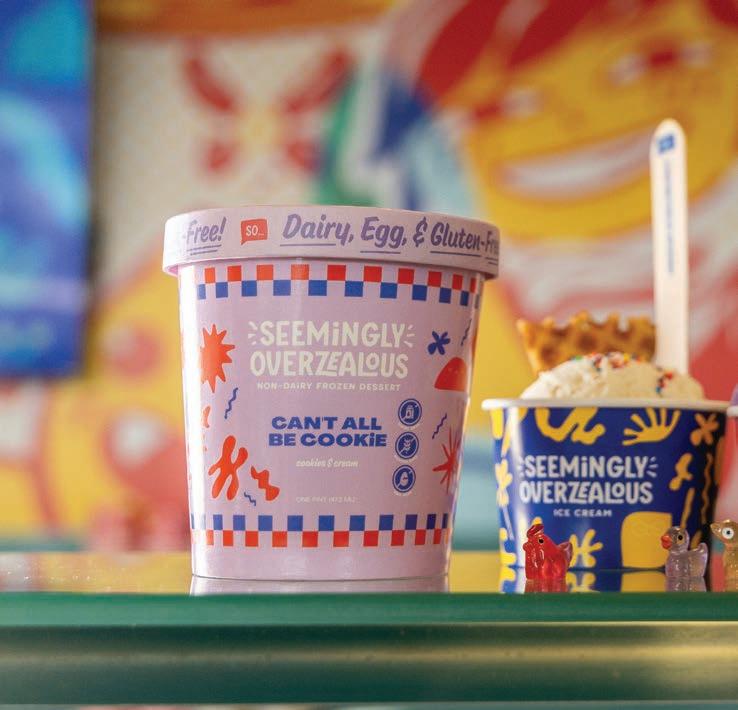 Seemingly Overzealous founders Jess Berresse and Garrett Tichy began making ice cream for fun when they started dating. The now-married couple turned their early-romance hobby into a burgeoning dairy-free ice-cream business — the name is a reference to a text exchange following their first date — with three locations and two more on the way (page 67).