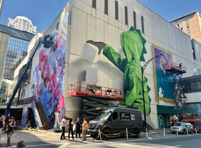 of Charlotte SHOUT!’s Spray Jam in 2023. Charlotte artist Sydney Duarte and Treazy Treaz, an artist from Australia, organized the project and gave it a theme: Bringing Light to Dark Places. Over these past two cycles of SHOUT!, dozens of artists have contributed to this vibrant showcase of largely local talent.