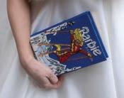 For Claire’s something blue, she carried a limited edition, numbered handbag by French designer Olympia Le-Tan. “It truly was the perfect something blue because we were in Vail and it is Barbie skiing — what could be more fitting for the occasion!”