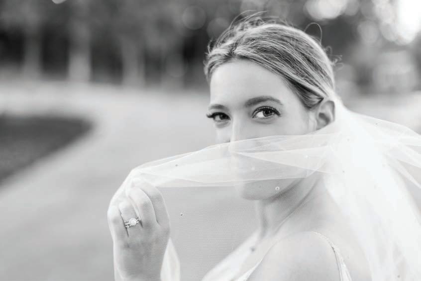 when Brandon proposed to MacKenzie, it was unexpected — for both of them. Playing cards on the back deck, Brandon decided the moment seemed right. Going inside to get the ring, he returned with a bottle of wine the couple had been saving. On the blank label, a message was written: “Getting Engaged.” For the couple, ensuring their wedding had that same relaxed, simple feel was important. “My main priority was making sure our wedding felt like us,” MacKenzie says. To minimize stress and enjoy the process, they hired a wedding planner who understood their vision. “I loved every detail,” MacKenzie says of her perfect day, noting the colors of the flowers and the way they brought all the elements together. “Never compromise on something you don’t love.”