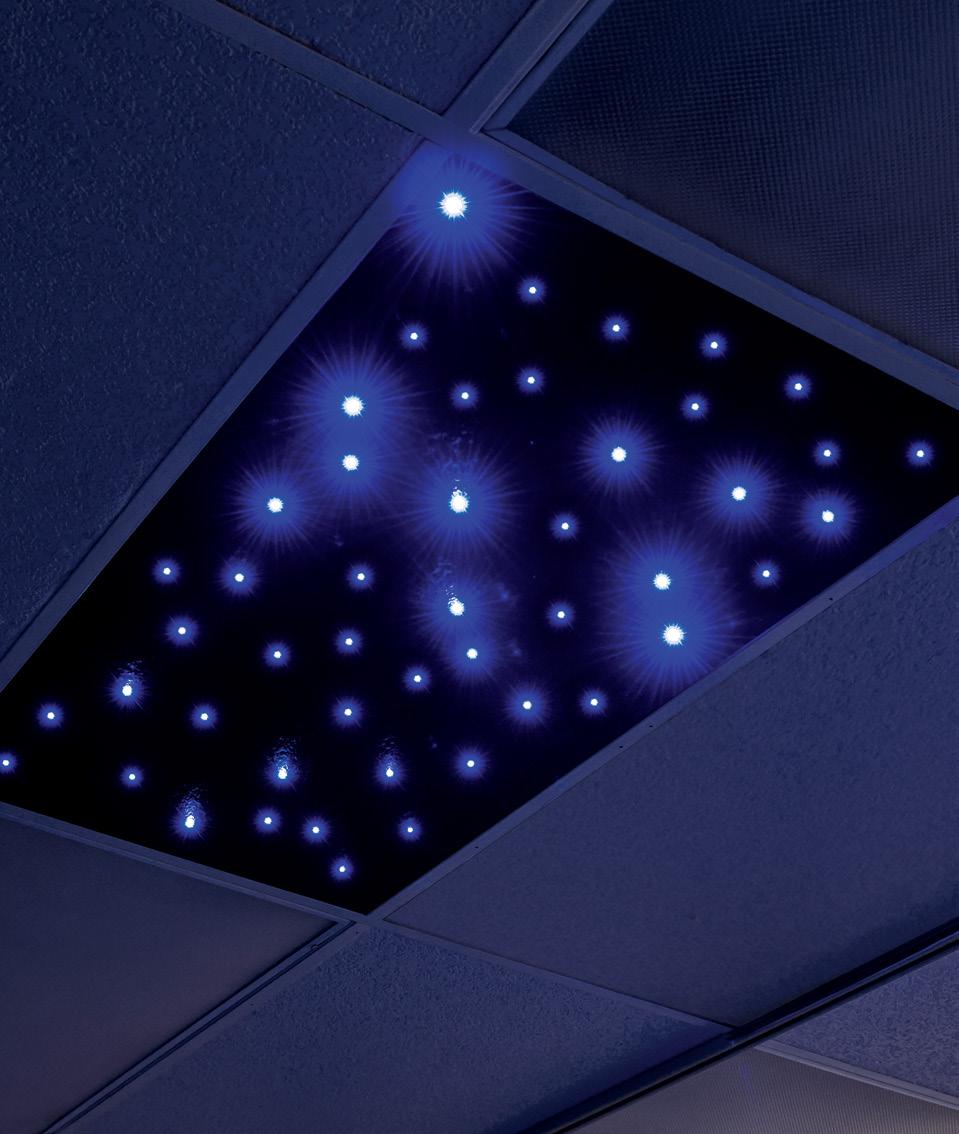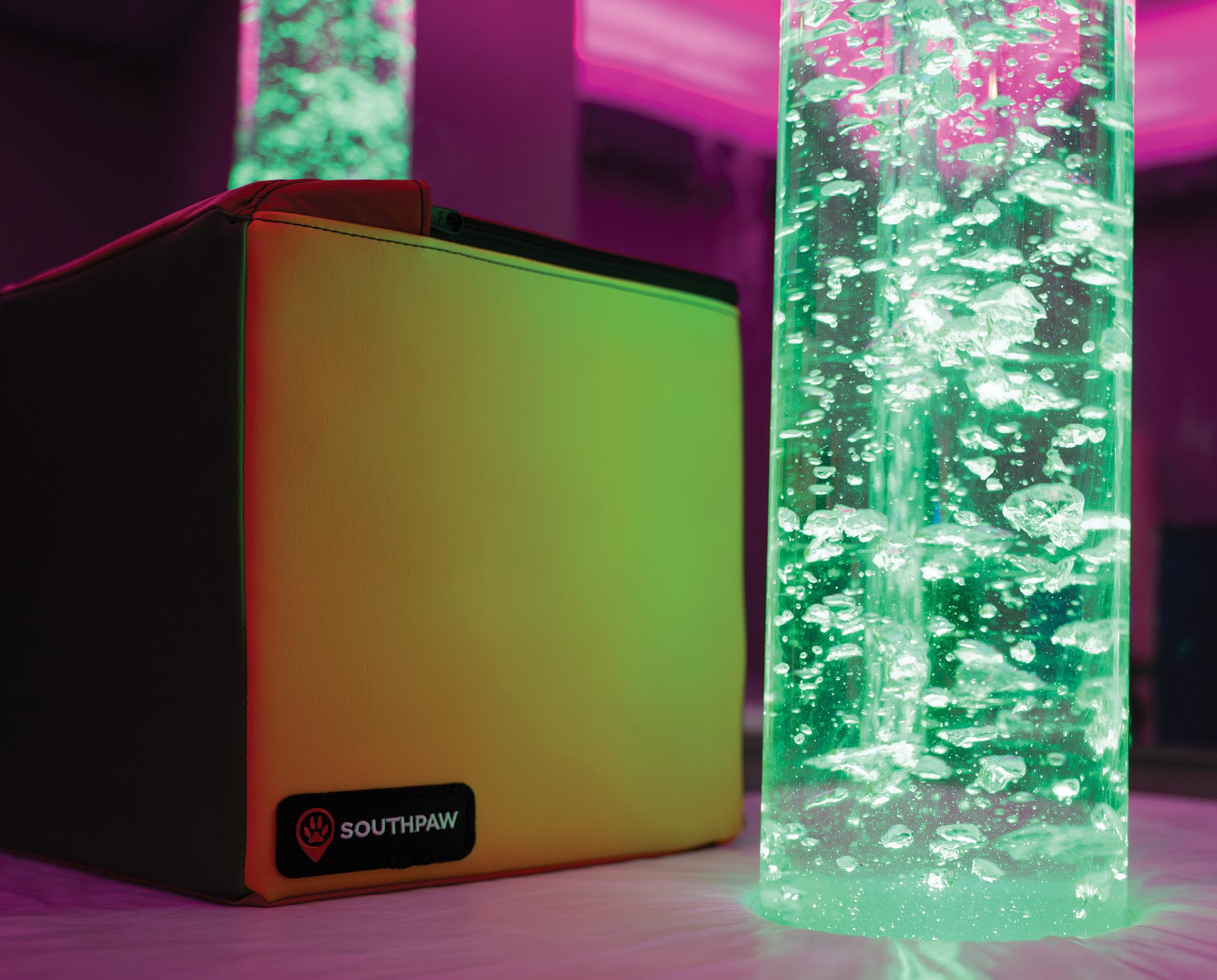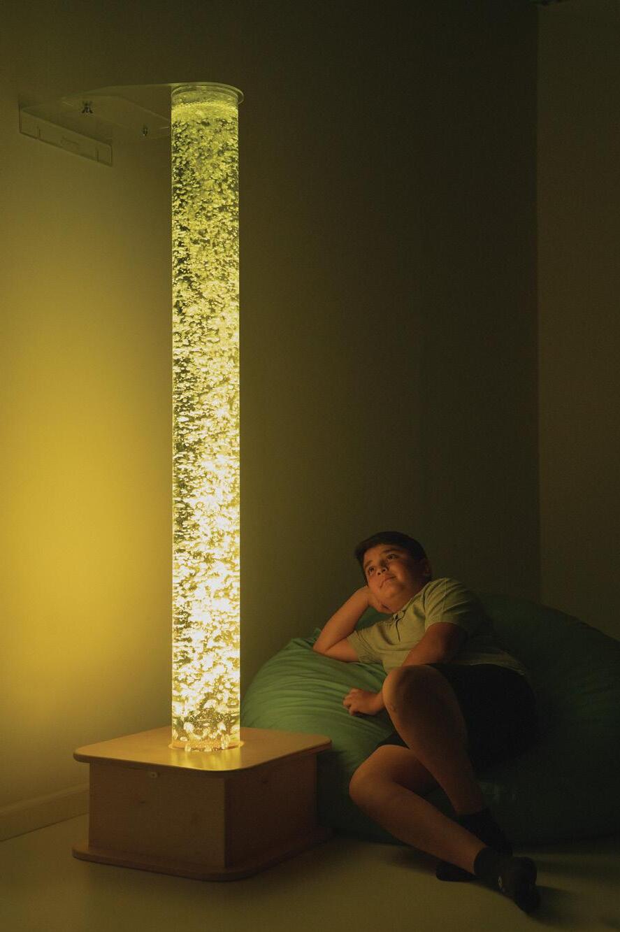 To turn this vision into reality, BHN partnered with Southpaw to transform a modest reading den into a state-of-the-art sensory sanctuary. By integrating bubble columns and projectors, plus a mix of brand-new and traditional interactive wall panels, they created a dualpurpose environment: a chill-out zone to reduce scattered brain activity and a safe space to engage the senses and develop self-regulation habits.