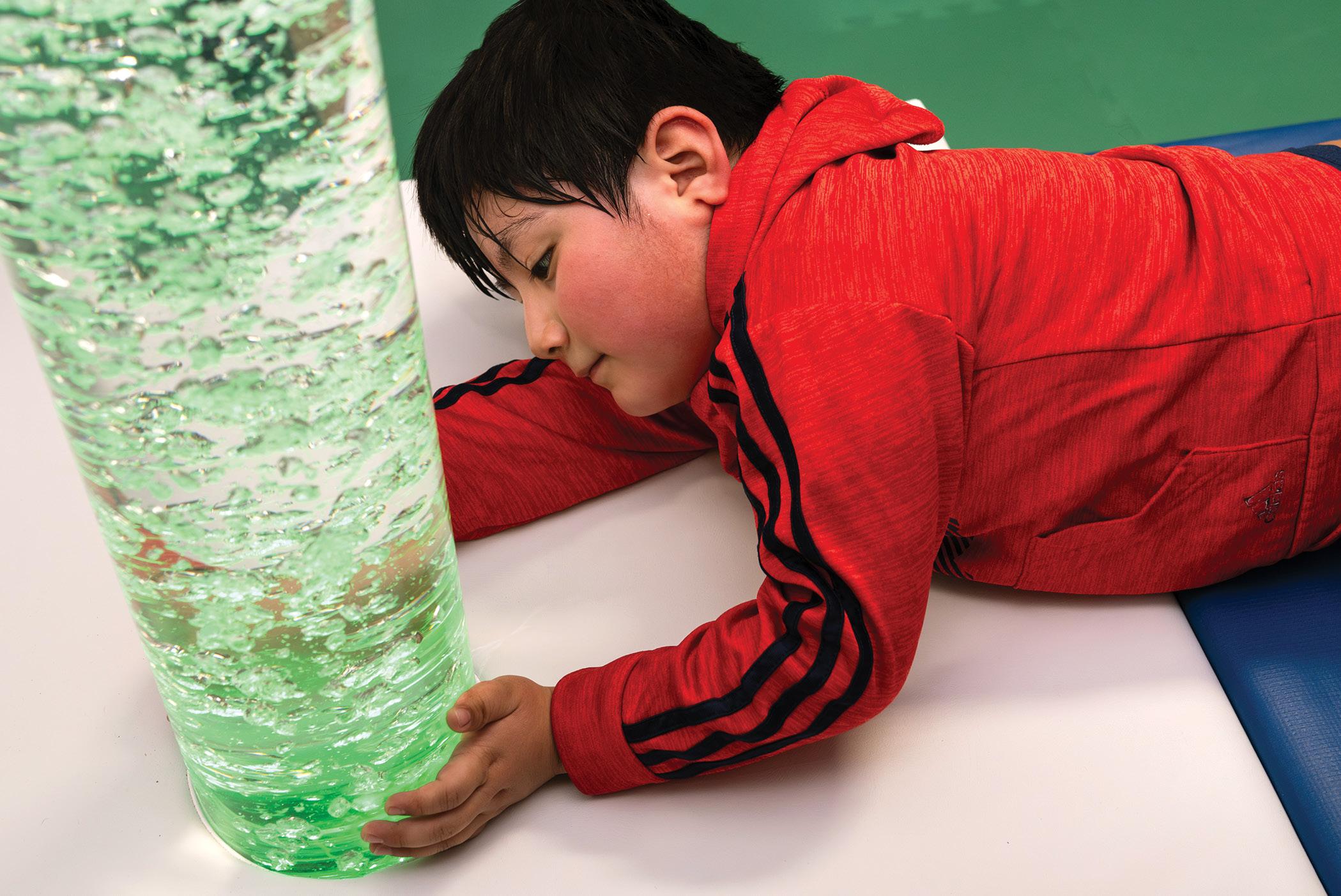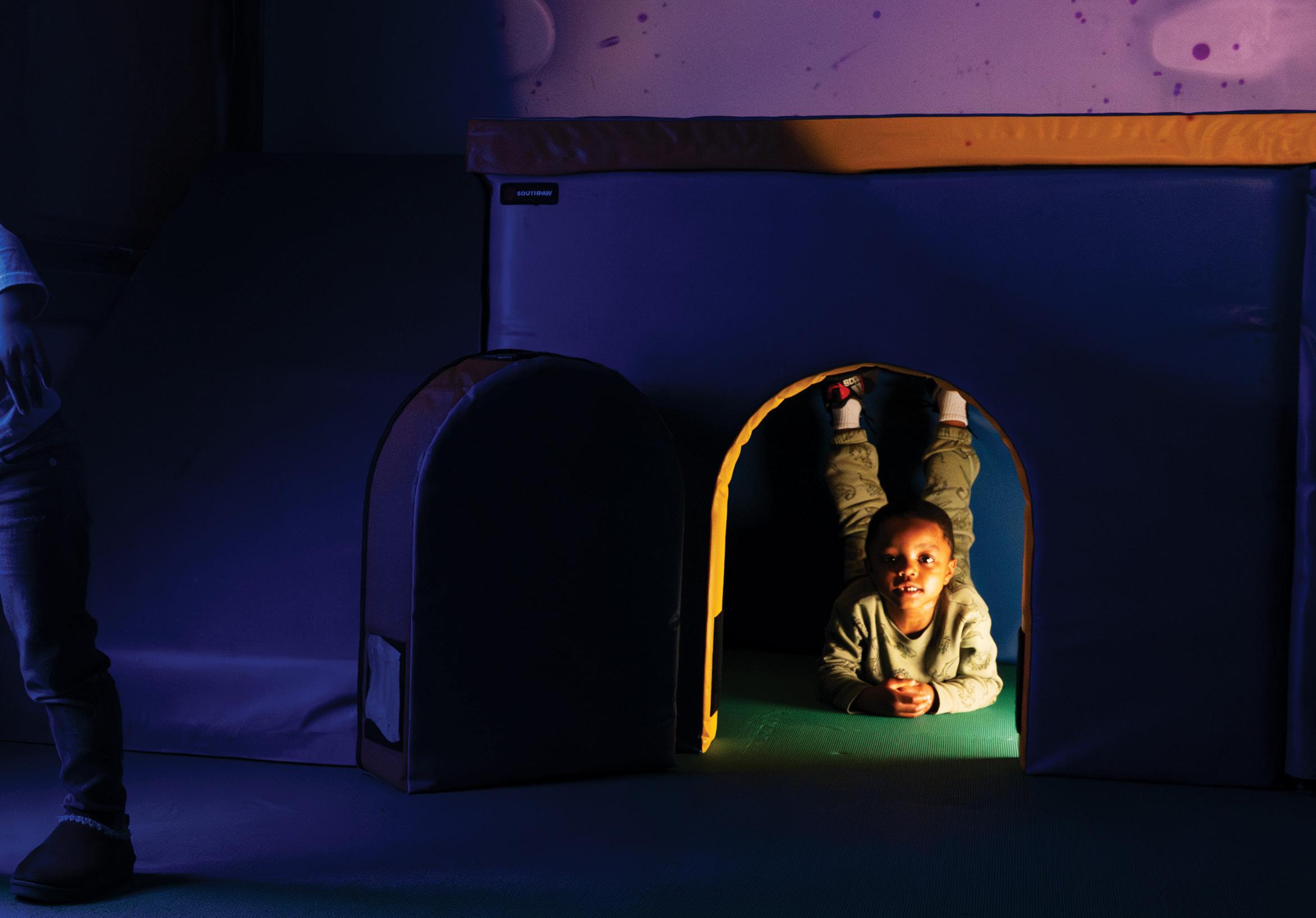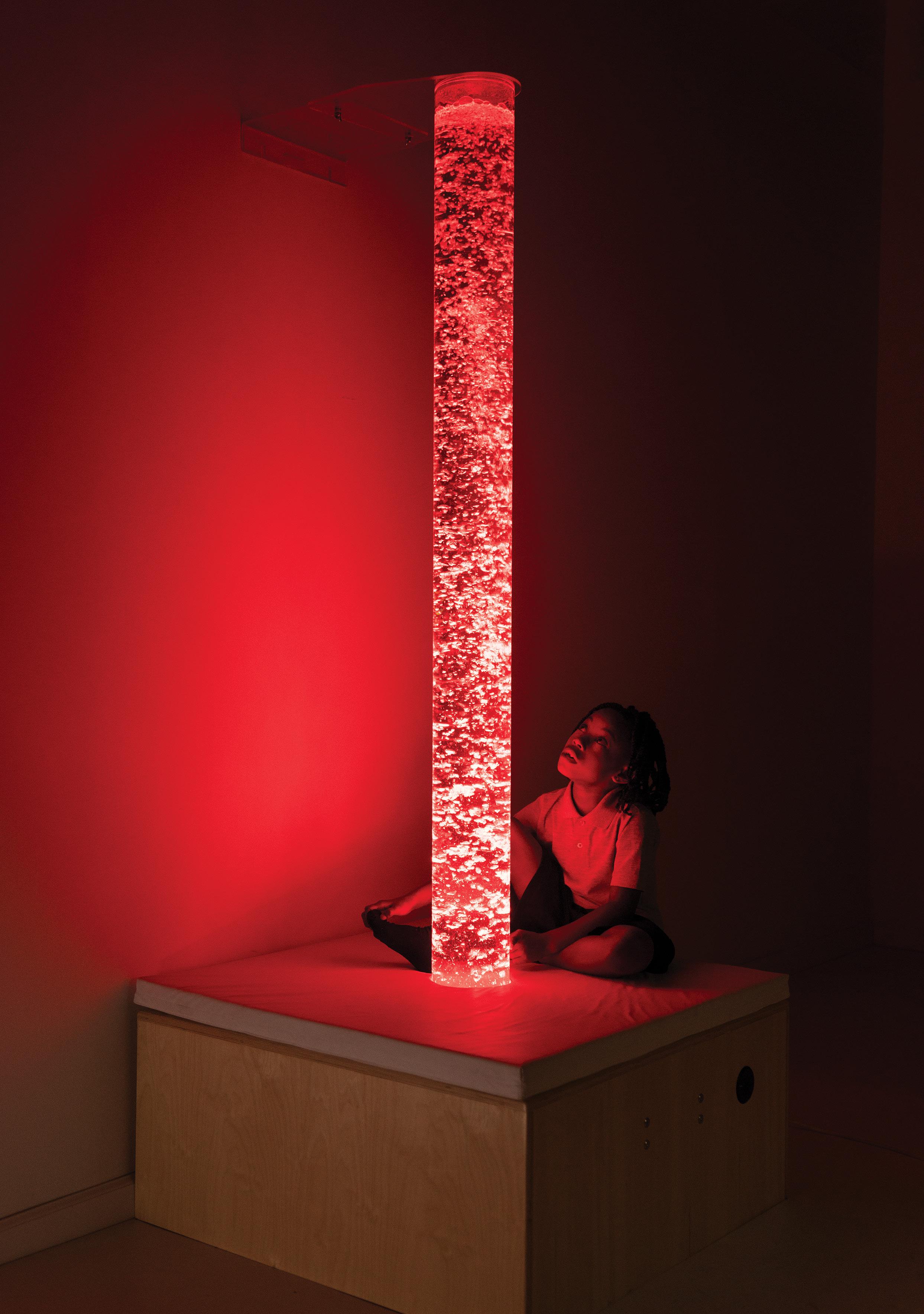 To turn this vision into reality, BHN partnered with Southpaw to transform a modest reading den into a state-of-the-art sensory sanctuary. By integrating bubble columns and projectors, plus a mix of brand-new and traditional interactive wall panels, they created a dualpurpose environment: a chill-out zone to reduce scattered brain activity and a safe space to engage the senses and develop self-regulation habits.