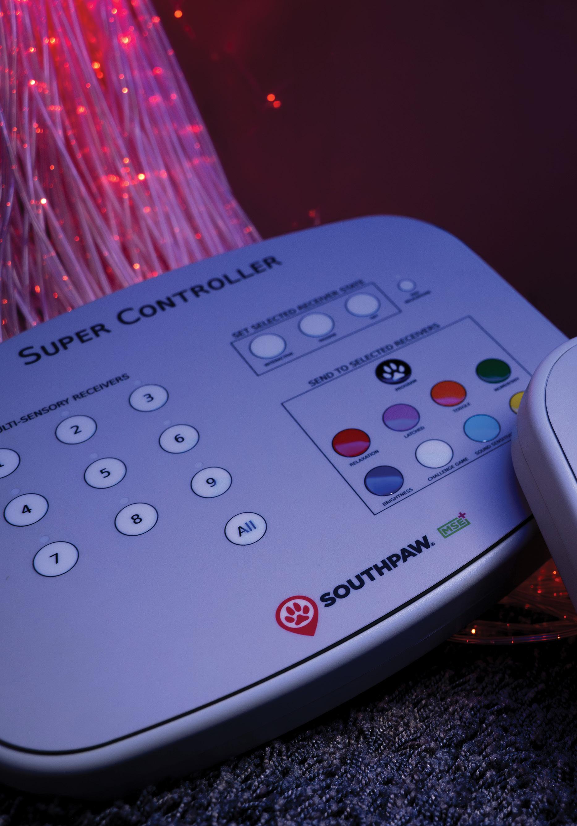 The Super Controller is the therapist-controlled wireless interface that connects the MSE+ wireless switches to all MSE+ Interactive products. It also allows the therapist to access 8 therapeutic programs with all MSE+ products: relaxation, catched, toggle, momentary, brightness, challenge game, sound sensitive, timer. The sound-sensitive program, when paired with QBall Wireless Microphone, can make every MSE+ Interactive product sound-sensitive. No need to purchase separate sound sensitive products!