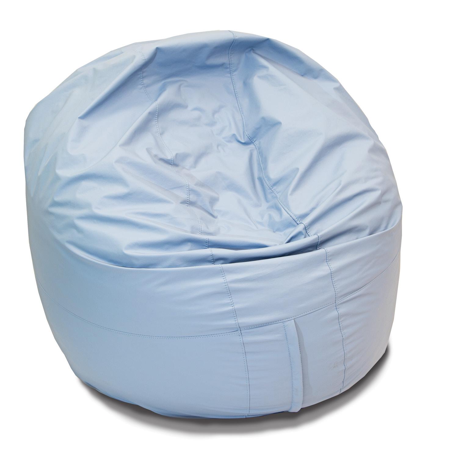 A vital component in every MSE+ room, this round, light-blue vinyl Wireless Vibro Bean Bag Chair has a wireless amplifier that connects via Bluetooth to your favorite music source.