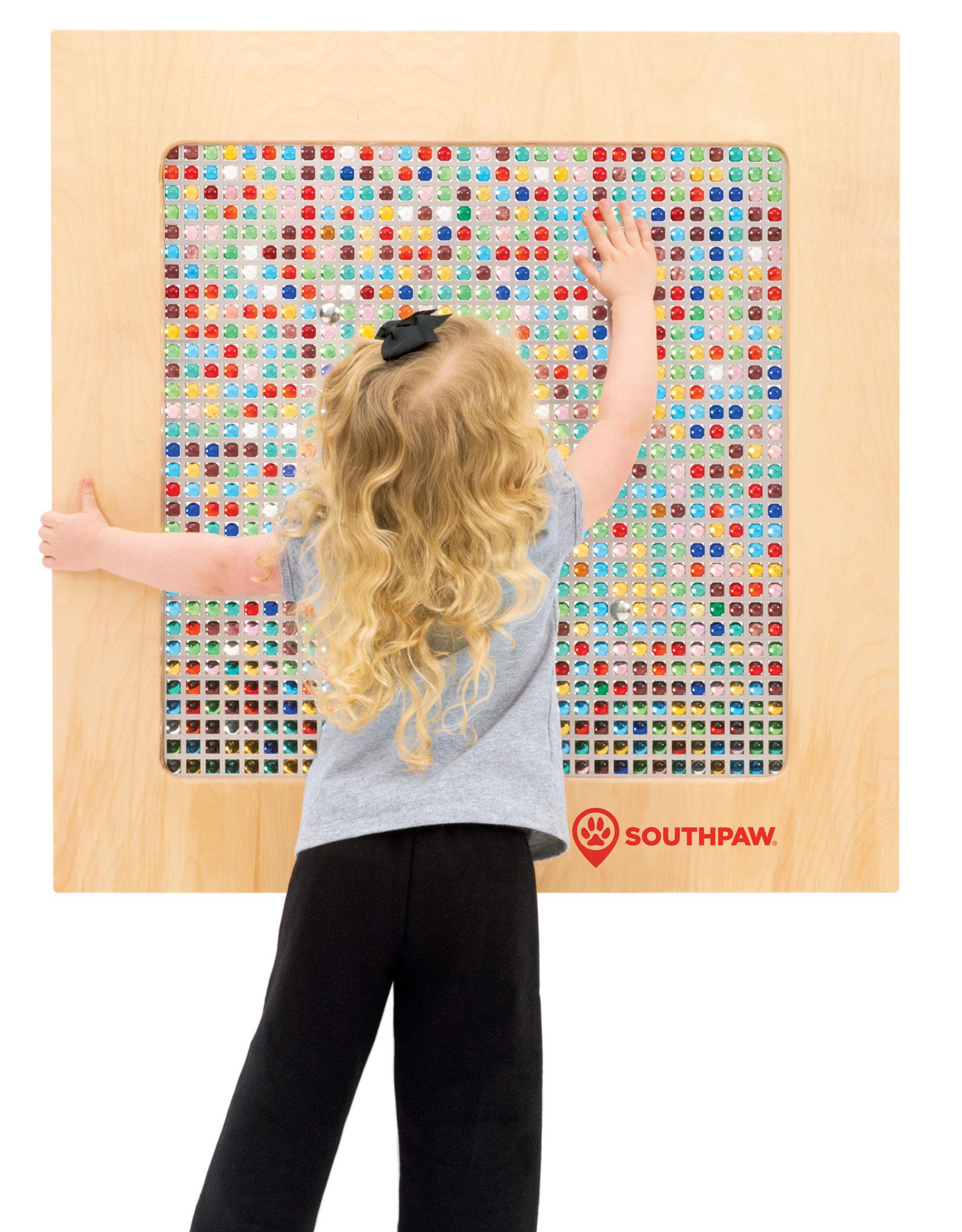 Southpaw’s UV Rod Panel is back and better than ever! With 96 colorful translucent pegs that light up when placed, it provides a fun, interactive way to strengthen fine and visual motor skills, balance, postural control, and even social engagement.