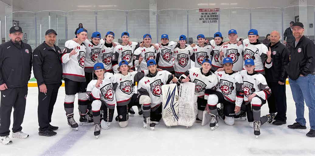The Talbot Trail Blazers U15B completed their season on Sunday, March 29 with a convincing 6-1 win over Windsor, to be crowned the Bluewater League Day of Champions Winner in the U15B Division. Back row, left to right: Coach Mike Harrison, Coach James Seguin, Cole Hammond, Drew Gouin, Landen Tiessen, Blake Friesen,