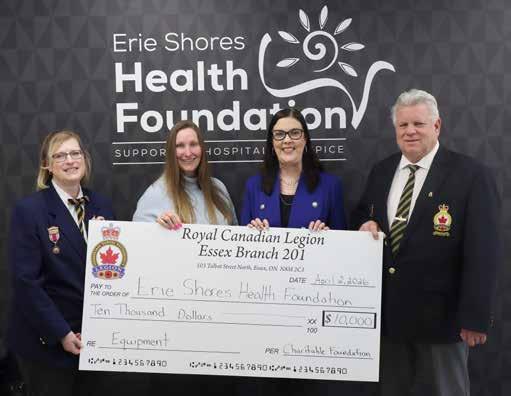 Representative from the Essex Legion Branch 201 were on hand to present a cheque for $10,000 to the Erie Shores Health Foundation (ESHF) on Thursday, April 2. From left are Christine Hayes, President of Branch 201 Ladies Auxiliary and Vice President