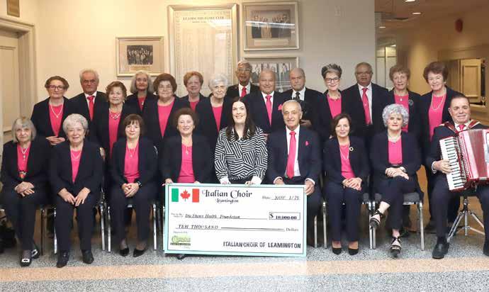The Italian Choir of Leamington made another generous donation to the Erie Shores Health Foundation over this past weekend. They met up at the Roma Club on Saturday, November 1 to hand over a $10,000 cheque to Foundation Executive Director Penny Bellhouse. The funds are raised through their involvement in fundraising through Chances Gaming Lounge. In the front row, from left, are Filomena Caffarena, Luigina Ciotoli, Margaret Eagle, Irma Ingratta, Penny Bellhouse, Bruno Ingratta, Natalina Peraino, Michelina Simoni, Settimieo Amicone. Standing, from left are Enza Ligotino, Nick Mastronardi, Jackie Incitti, Essie Gulliver, Susie Cervini, Oliva Sabelli, Assunta Gori, Caesar Tiburcio, Henry Mastronardi, Vince Mastronardi, Lucy Gabriele, Dave Patterson, Filomena Mastronardi, Michelina Mastronardi.