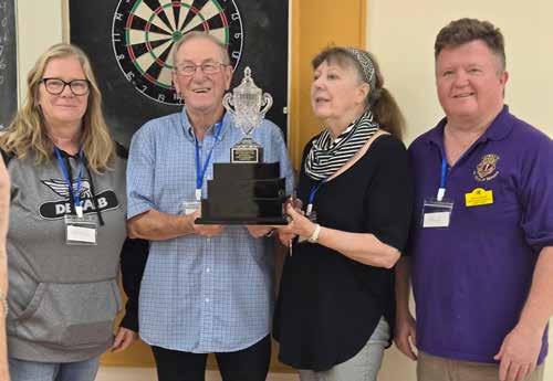 The Leamington Lions Club and Half Century Centre have partnered in a new dart tournament, which was held at the club on October 25. The Lions/Half Century Centre Open Invitational Dart Tournament was won by the team of Allan Munson and Patricia Macher. Here they are congratulated by Half Century Centre Executive Director Christine Lehn, left, and Lions Club representative Bruce Medcalf, right.