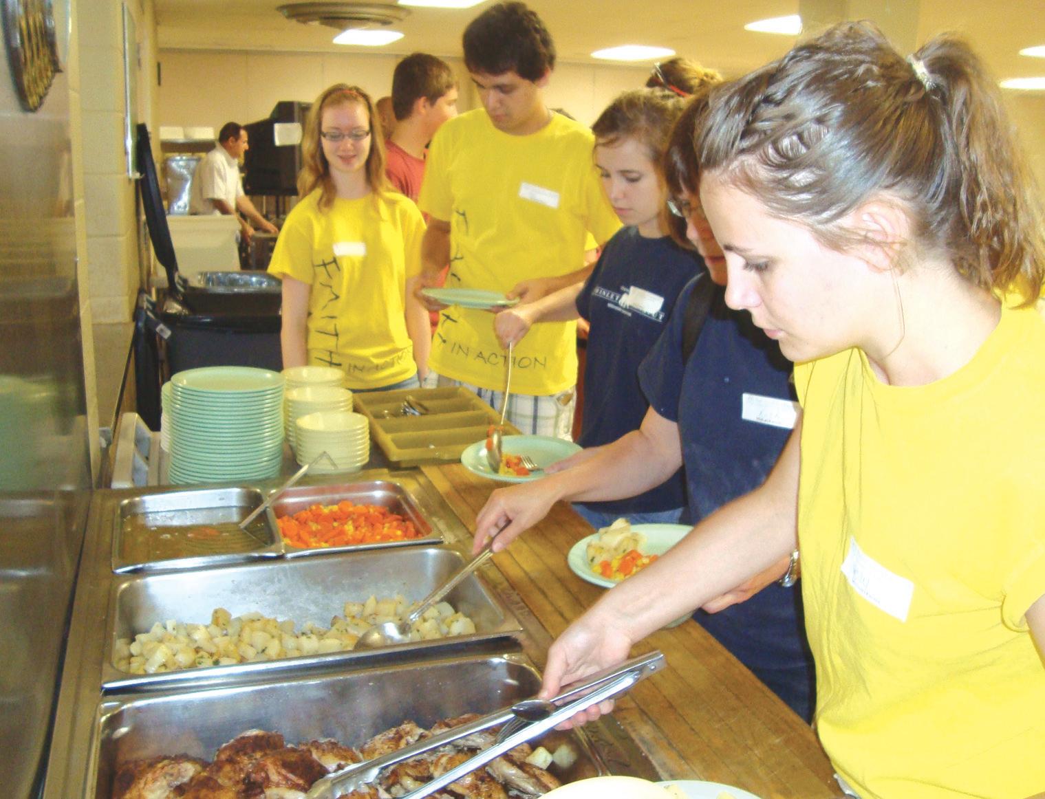 homeless youth. They spent the next two days serving in various shelters, dropin centres and missions. Their work included serving food, sorting clothes, bagging flour and rice, folding sheets, playing music, and visiting with the patrons of the shelters. What was most meaningful, however, were the sessions where the stu-