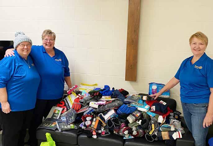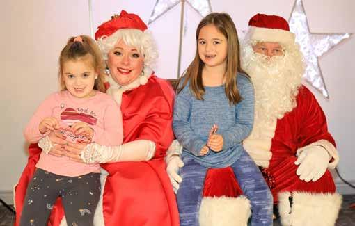 Sisters Charlotte, 4, and Olivia Rahm, 7, get their picture taken with Santa and Mrs. Claus on Saturday, December 10 as part of the Crafts With Santa event at Lakeside Park Pavilion in Kingsville. SUN photo by Deanna Bertrand Top photo: The lineup of residents awaiting their turkeys and groceries. Bottom photo: The Talking Over Turkey banner flies proudly during the event. SUN photos