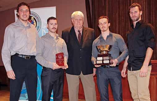 The Flyers’ J.P. Grineau, a Leamington resident, is congratulated by his parents James and Kim Grineau during a ceremony for graduating-age players. (Sun photo)