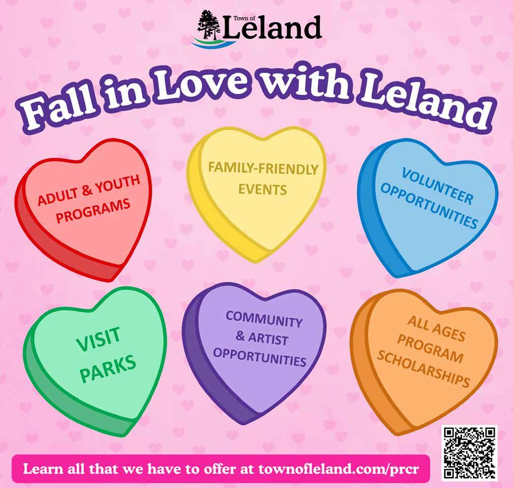 Check out https://www.townofleland. com/parks-recreation-and-cultural-resources for more information on classes and programs, including starting an art journal, pottery, gardening, writing creative nonfiction, acting, dance and more.