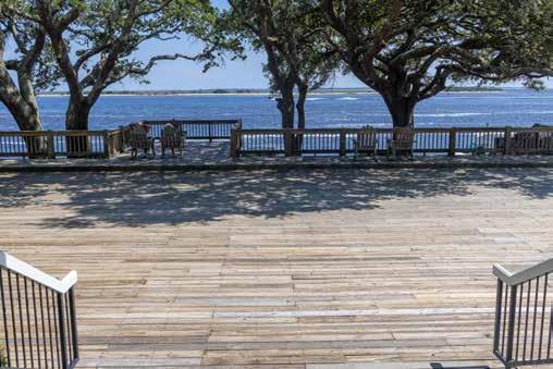 Enjoy wine, beer or coffee and sit a spell on the porches out back, with a view of the Intracoastal Waterway and Oak Island’s Barbee Bridge.