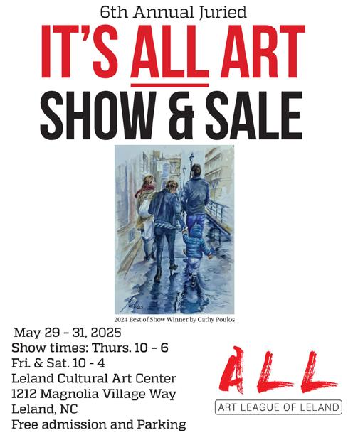 The group welcomes artists of all kinds and meets monthly (except in summer months) 4-6 pm at the Leland Cultural Arts Center, 1212 Magnolia Village Way.
