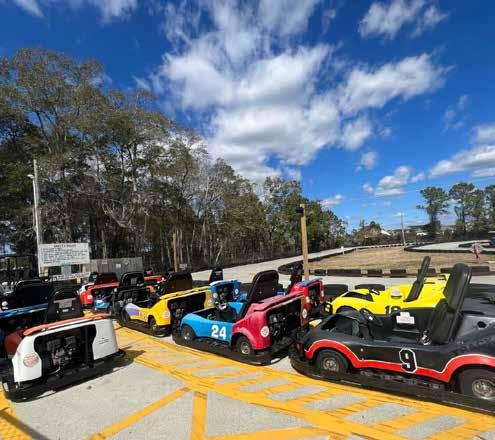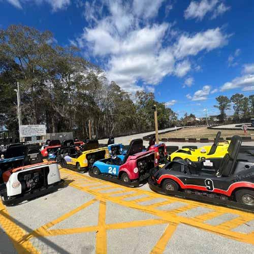 Business partners Tracey Shields and Larry and Shannon Kitchen wanted to create a space that families could come, hang out and just have fun. After careers in law enforcement and disaster relief, Shields originally from New York and the Kitchens originally from Ohio, initially started the business “Tiki Island Golf Carts” after moving to OIB and becoming friends. In a search for more Tiki Island Cart space, they came across the Super Track for sale and knew they could make this a