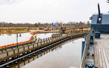 “By re-engineering the shoreline, creating a constructed wetland and elevating the parking lot, the project will reduce battleship vulnerability to river flooding,” said Dena Merlino Scott, Marketing Director for the Battleship. “Living with Water will restore natural aquatic habitats for an array