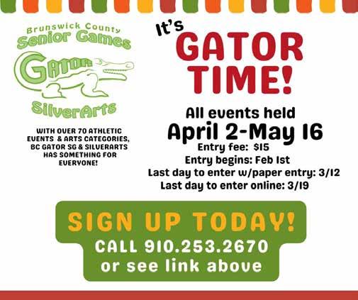 Brunswick County residents older than age 50 have an opportunity to get involved in a fun community event, indulge that competitive spirit, and exercise both their physical and creative muscles at the 2025 Senior Gator Games and Silver Arts Competition. Last year Brunswick County fielded 636 competitors, more than any of the 53 local competitions, and more than 100 winners went on the complete at the state level, according to Gator Games Ambassadors Chris and Gary Ettl-Mlynek.