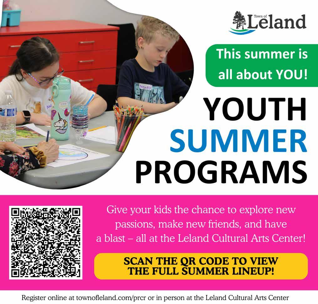 Check out https://www.townofleland. com/parks-recreation-and-cultural-resources for more information on classes and programs, including starting an art journal, pottery, gardening, writing creative nonfiction, acting, dance and more.