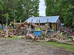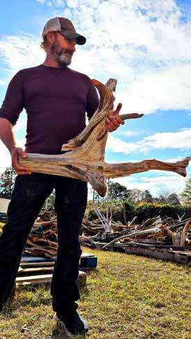 than washing to remove mud and other debris. “I keep going and getting more and more and more,” Gibson explained, noting that the popularity of driftwood decor with “coastal living folks,” as well as his enterprise’s U.S. 17 roadside location have “easily tripled the business we’d been doing” in a previous location.