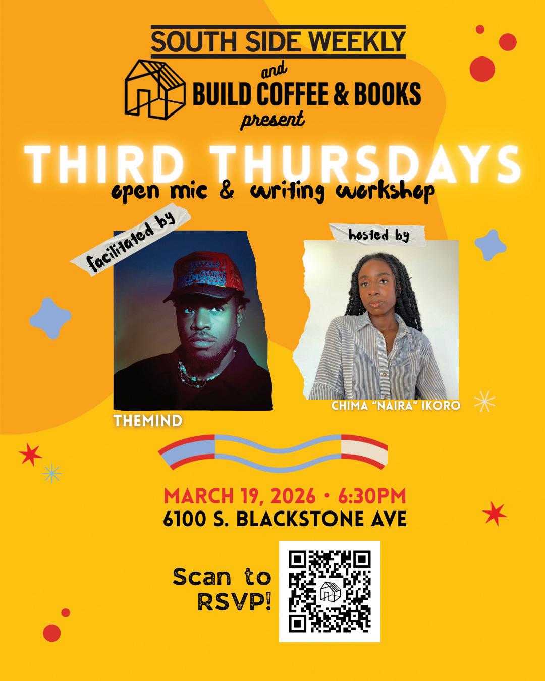 South Side Weekly and Build Coffee & Books will host our Third Thursdays open mic, featuring a writing workshop facilitated by theMIND, on March 19 at 6:30pm!