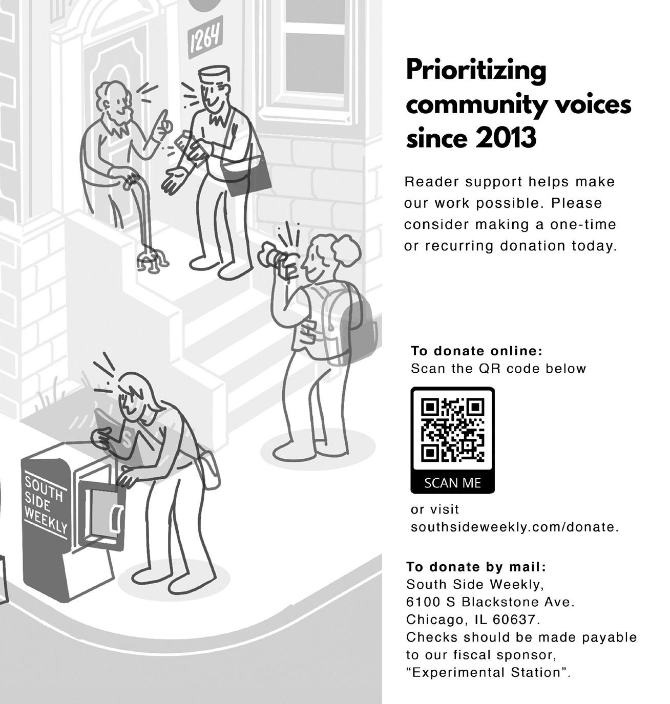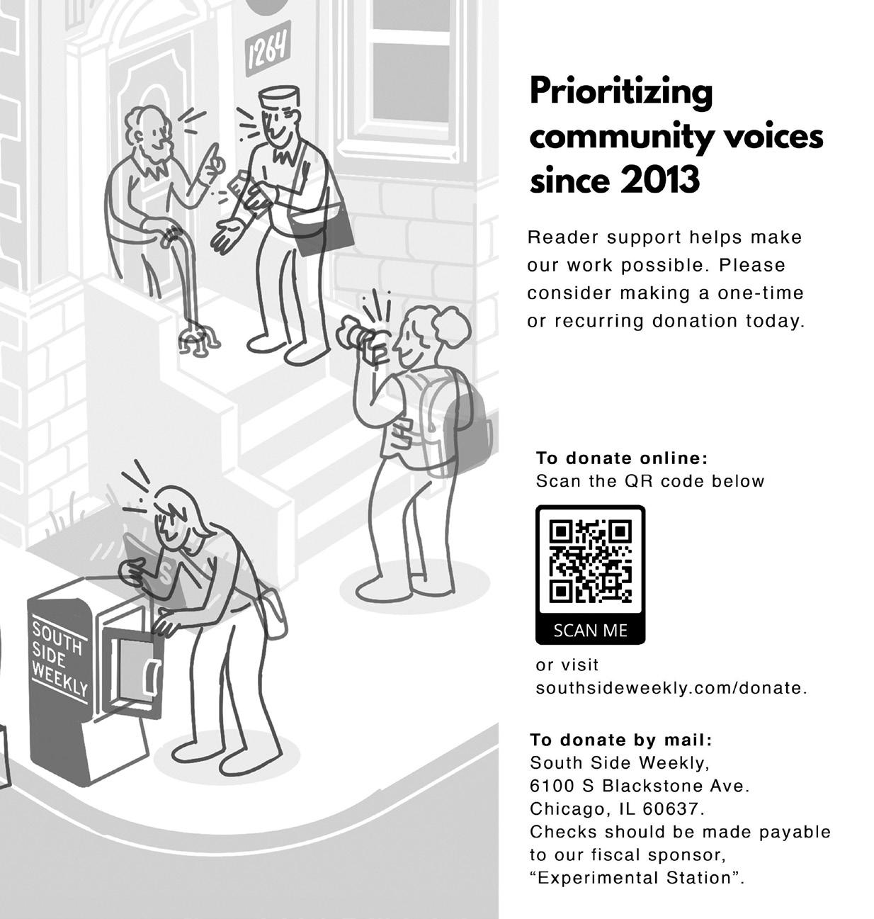 The South Side Weekly is an independent non-profit newspaper by and for the South Side of Chicago. We provide high-quality, critical arts and public interest coverage, and equip and develop journalists, artists, photographers, and mediamakers of all backgrounds.