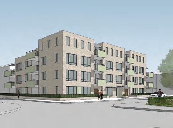 Ten private one and two bedroom flats and 15 one, two and three bedroom flats for council rent, with wheelchair accessible flats included at ground level with integrated parking. This project is scheduled for completion in 2016. We