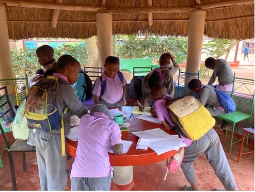 Since her first visit, every summer D'Italia returns to Jacaranda to teach, to create programs, and to help any way she can Last summer, she taught during the students’ library sessions, so she had the opportunity to teach standard 3 to standard 8 students (grade 3 to 8) In those sessions, she covered reading and writing skills But she also get to teach imagination Since the Malawian educational system is based on rote learning, she spends much time working with students to find their own voice So many of the students are excellent artists, and she works with them to believe that they can bring that same imagination to the written word. She also run the Jacaranda Writing Club, which is an after-school program.This means she sits in the “Summer House” (a gazebo) and students visit with her and together they write She gives them prompts They write and then together they revise From those stories and poems, she builds an issue of Jacaranda Writes, a literary journal that she designs and prints Students get to see their work in print, and they also sell the journal as a fundraiser She excitedly is about to send the next issue to the printer