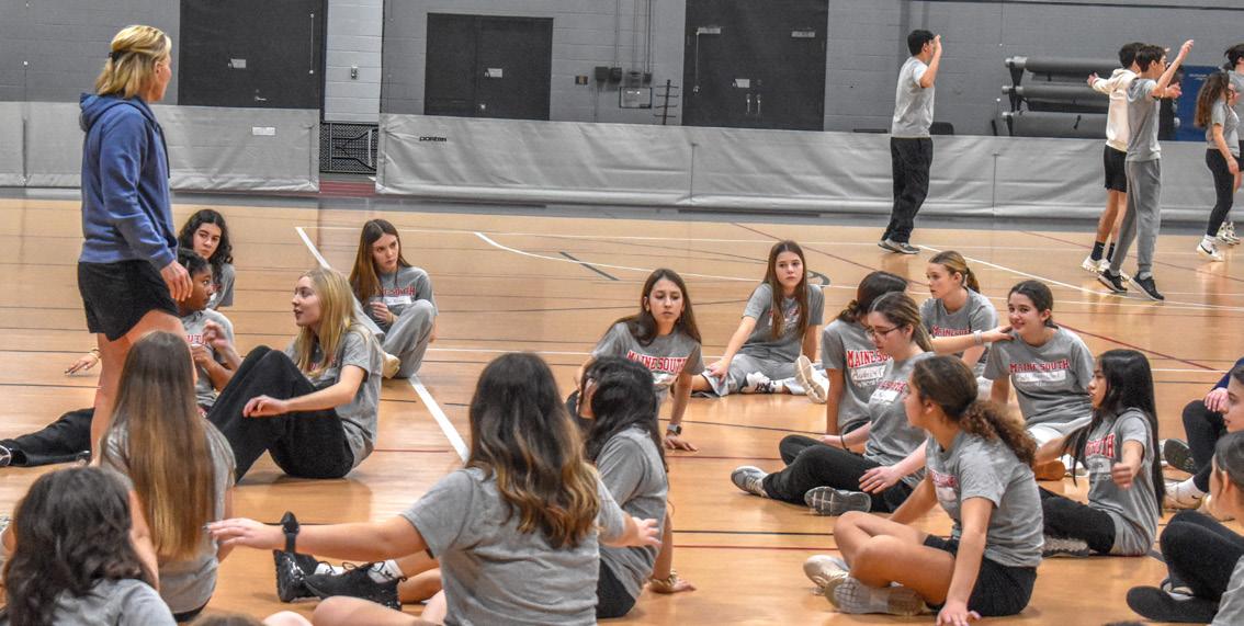 The team practices Monday through Friday from 3:30 to 6. In addition to these rigorous practices, the team also participates in ballet classes, workouts with their trainers, and clinics led by Maine South’s sports psychologist. With their high reputation and skill comes