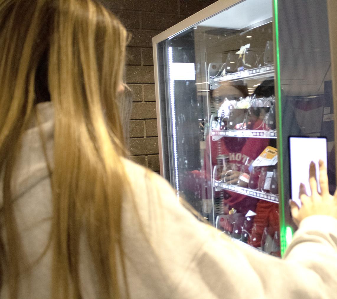 CHECKING OUT Maine South students can be found supporting the Women in Business club by buying from their vending machine. The vending machine is filled with various everyday necessities.