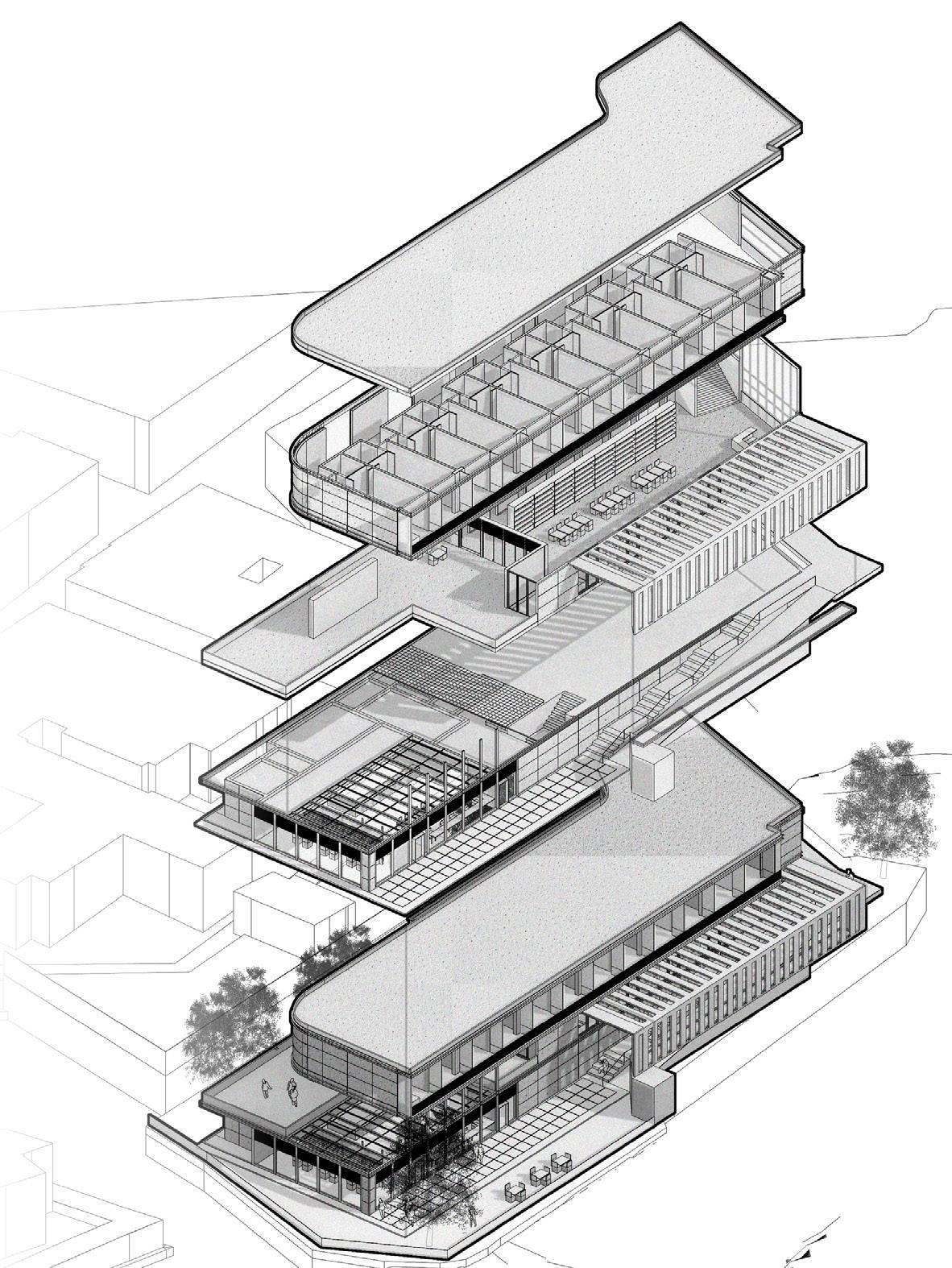 EL PROYECTO PROGAMATICAMENTE ALBERGA USOS DESTINADOS A LOS NOMADAS DIGITALES DE LA ACTUALIDAD PERMITIENDO UN ESPACIO DONDE TRABAJAR Y RESIDIR POR UN TIEMPO EN SUS NUEVOS ¨HABITATS¨.