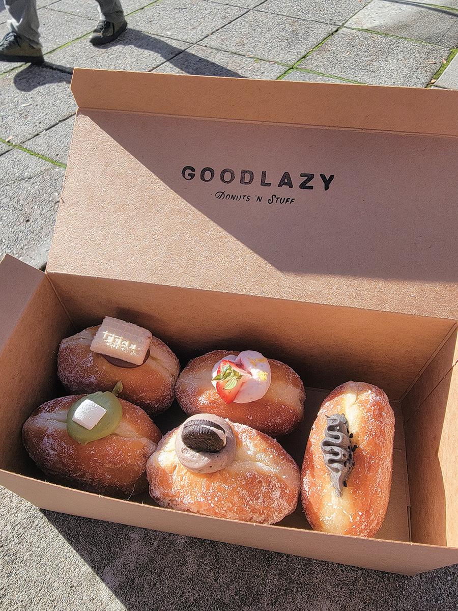 昨年2月にイサクア・ハイランドにオープンしたテイクアウト専 門のドーナツ店を訪れました。個性豊かな見た目のドーナツ はどれも愛らしく、ふわふわの生地の中には軽い口当たりのク るフレーバーは約70種類と豊富で手土産に最適です。なお、