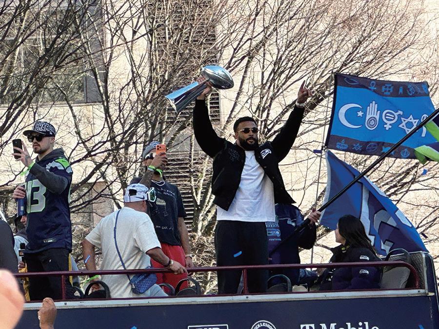 シーホークス、歴史的優勝パレードに 12sが集結 2月11日、スーパーボウル優勝を祝うトロフィープレゼ ンテーションと優勝パレードが開催されました。ルーメ ン・フィールドの無料チケット約5万枚は配布開始から 数十分で終了し、当日も早朝から多くの「12s」が集まり ました。フォース・アベニューからスペースニードル付近 まで続く約2マイルの沿道はファンで埋め尽くされ、ト ロフィーを高く掲げる選手たちの姿に、歓声と拍手が巻 き起こりました。快晴の空の下、頂点に立ったチームを 称え、街全体が一体となる歴史的な1日となりました。 Go Hawks!(A)