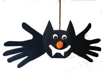 Make use of your child’s hands as wings to make this fun Halloween bat. Trace each hand onto black poster board, heavy construction paper or fun foam. Then cut out a head with pointed ears. Assemble the pieces with glue or tape.